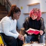Dieses hat seinen Ursprung in Schwarzen feministischen Bewegung. Mawuto und Anna teilen Theorie und Praxisansätze und Einblicke in queere und dekolonialen Designstrategien. Dabei spielen Kollaboration und Fehlerfreundlichkeit eine große Rolle.
